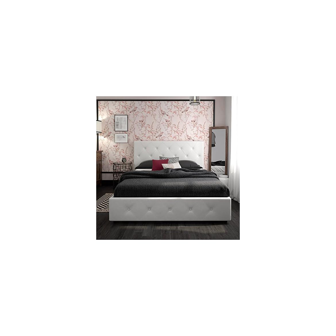 This contemporary and chic bed frame is designed with graceful button tufted diamond patterns on both the headboard and footboard and upholstered in faux leather. Metal side rails for guaranteed stability and durability. Dhp dakota upholstered storage platform bed. 40 pounds ideal for small space living. This contemporary and chic bed frame is designed with graceful button tufted diamond patterns on both the headboard and footboard and upholstered in faux leather. Dhp dakota upholstered platform bed with storage drawers, black faux leather, queen description. With four generous storage drawers in its base, our platform bed opens up floor space and is a favorite in smaller rooms. Center metal rail and leg for added support. Dhp dakota upholstered platform bed with storage drawers. Free shipping for many products! Dorel dhp dakota upholstered platform bed with storage drawers, black faux leather, queen. Check wayfair's vast choice of top brands & styles and get great discounts daily. This contemporary and chic bed frame is designed with graceful button tufted diamond patterns on both the headboard and footboard and upholstered in faux leather.